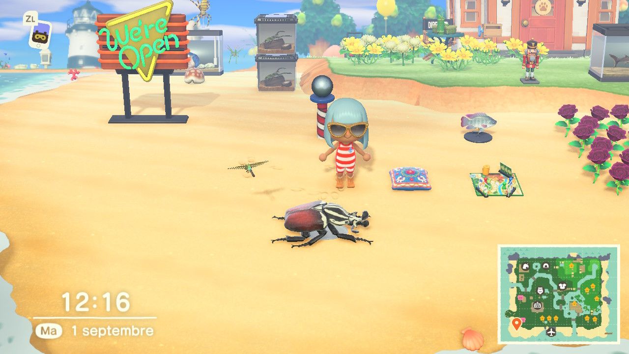lI viendra sur votre île pour vous proposez d'acheter vos insectes à des prix imbattables (50 % en plus qu'à la Boutique Nook). En outre, vous pourrez lui passer commande de meubles spéciaux. Comme pour Pollux, vous devrez lui apporter 3 insectes identiques pour qu'il vous fabrique un objet. Il sera dans votre village jusqu'à 5 heure du matin. ![]() Il ne fait qu'une commande à chaque visite. Vous pouvez préparer sa prochaine visite en attrapant les insectes désirés avant le jour J. Je pense à la super tarentule. La commande arrivera le lendemain par courrier. |
